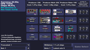 i had the idea to make an online casino that doesn't cost money. i love gambling but it's really inaccesable in my country. so here is a game where you generate income and then gamble to make chips to increase your money generated. please leave feedback in the comments.